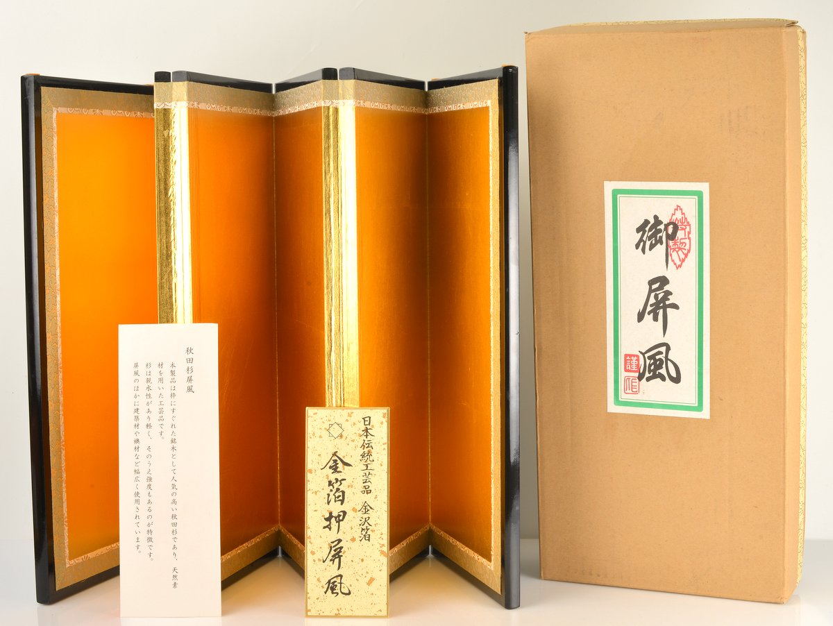 Paravent Japonais « Kanazawa-haku » à 6 Volets – Feuille d’Or Véritable & Cèdre d’Akita (Style : Rokkyoku Ippon-Kazari)