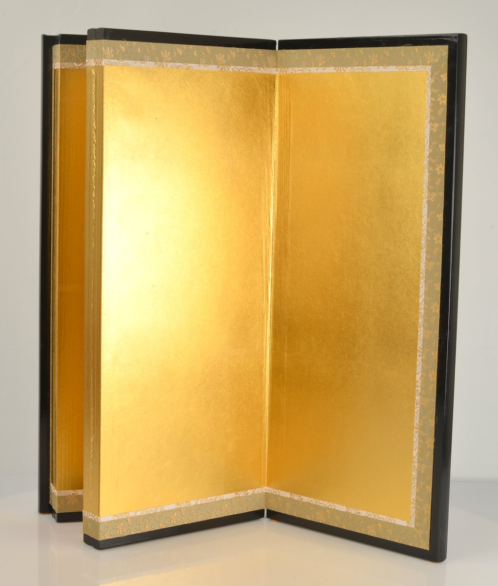 Dorure en Feuille d’Or de Kanazawa (金沢箔) : La surface de ce paravent est habillée de feuilles d’or véritables provenant de Kanazawa, la capitale historique de la feuille d’or au Japon. Ce label d’État garantit une qualité d’or supérieure, qui ne s’oxyde pas et offre une brillance profonde, chaude et subtile, idéale pour capturer la lumière et mettre en valeur  votre objet sans créer de reflets agressifs.