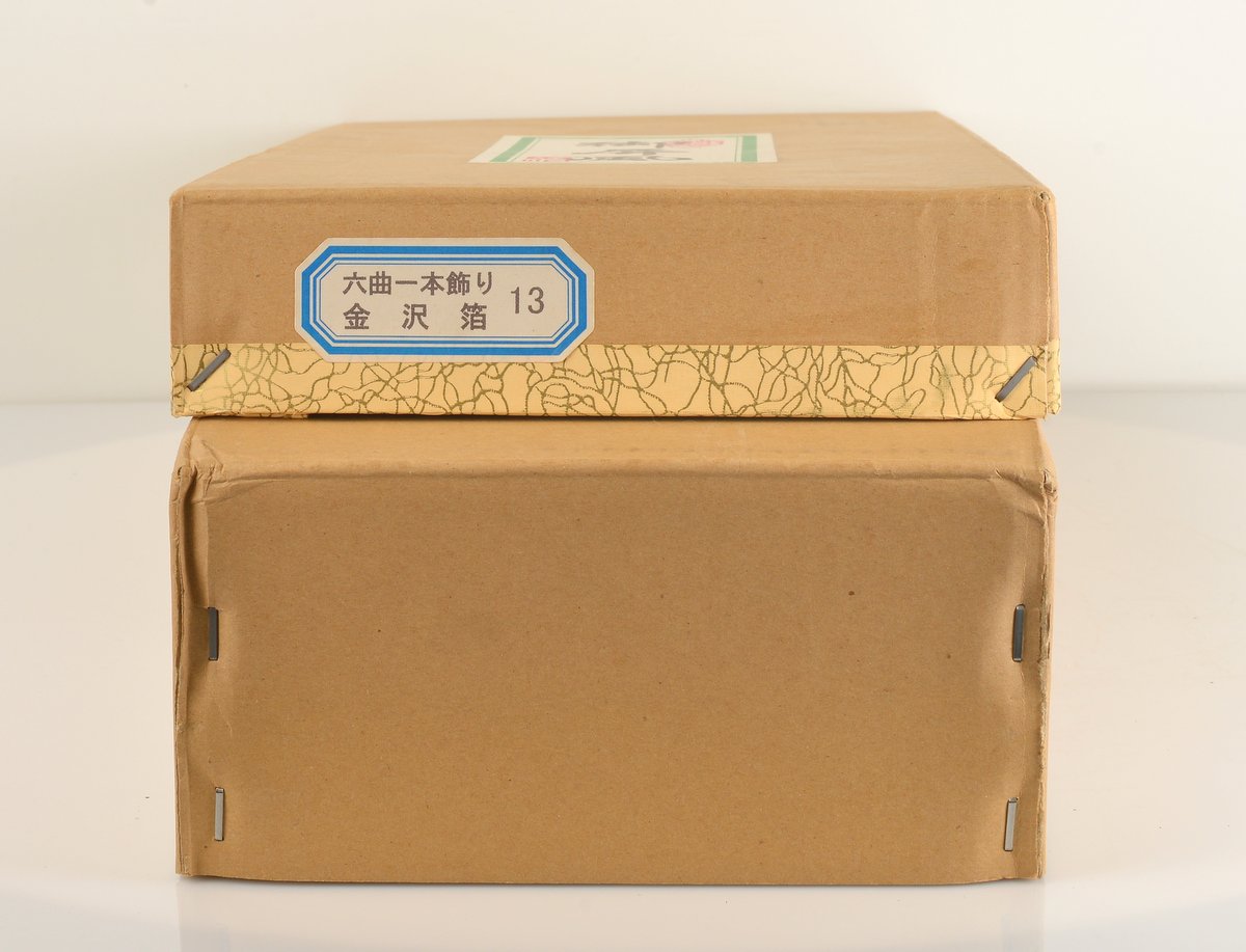 Sa boîte d’origine (O-Byōbu) avec ses étiquettes descriptives